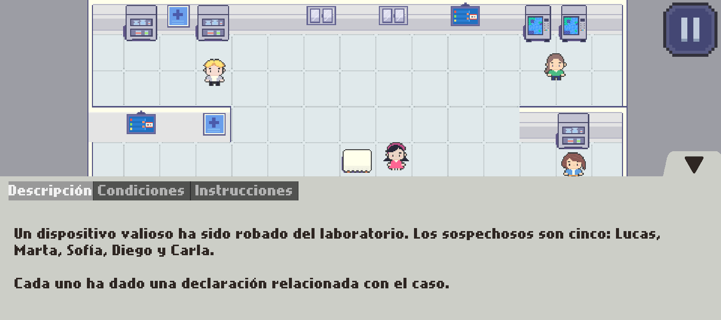 Con un estilo RPG en pixel art, explorarás un mundo lleno de personajes, misterios y desafíos lógicos. Interactúa con más de 20 NPCs únicos, cada uno con diálogos que aportan pistas, humor y profundidad al universo del juego.